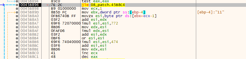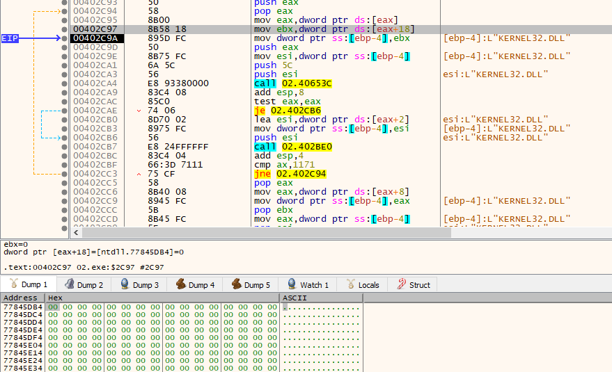 로직의 흐름은 전부 파악 했고 패치 작업을 해줘야 한다. Code Section은 W권한이 없기때문에 패치가 안된다. VirtualProtect 함수를 이용해 권한 할당을 해줘도 되지만 간단하게 W권한이 있는 DS 영역에 패치를 해줬다.