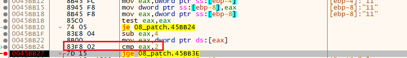 Check2: [EBP+8] 값이 3인지에 대한 여부를 검사한다. 단, 로그인 성공시 에는 1값이여야 정상 로직을 수행했다.
